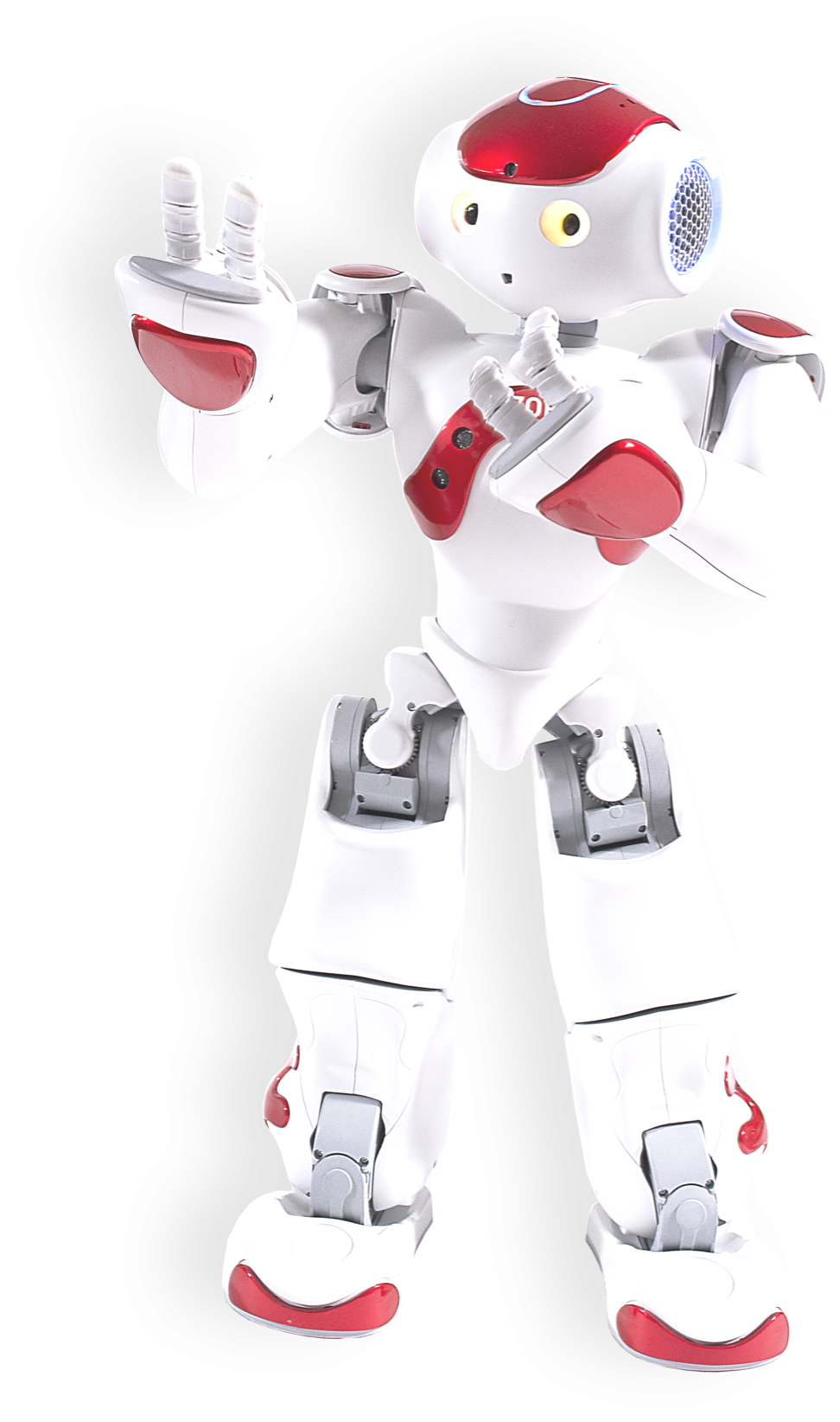 I’m a Nao and the perfect small buddy to help you in many ways. Like humans, I have two legs and two arms and can lead gym sessions to help you stay in good shape. I can also be used to entertain, to train brains and help teachers or students to learn more in a really fun way.